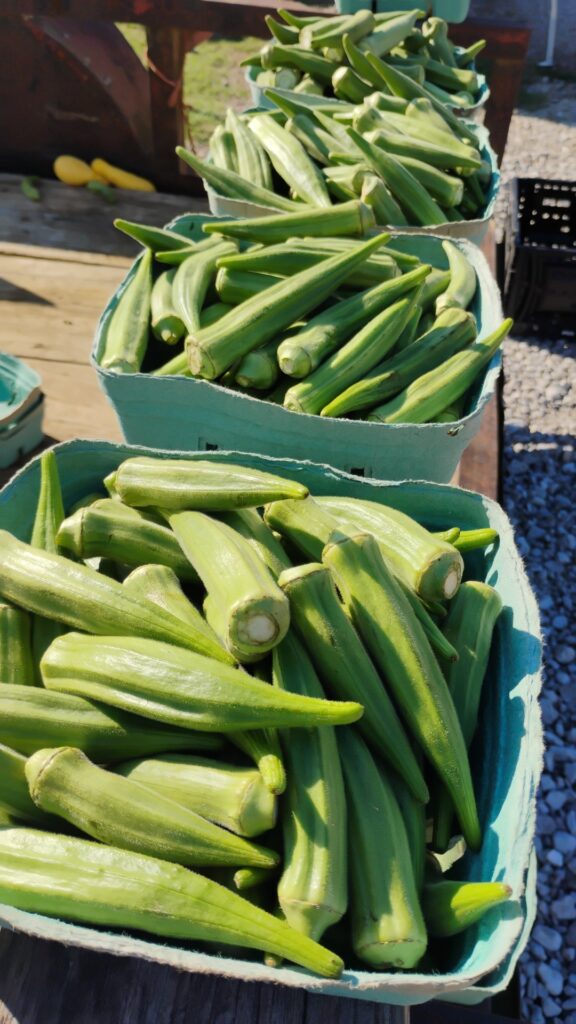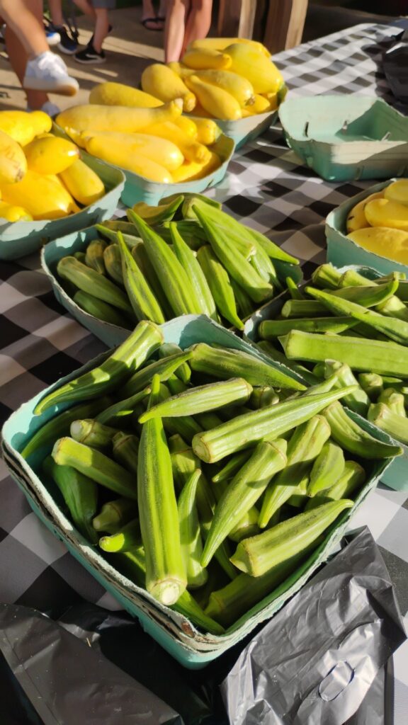 You’ll find Patterson Farm Co. selling their harvest Saturdays during the summer at Pontotoc Farmers Market, offering quality produce straight from their fields to your table.